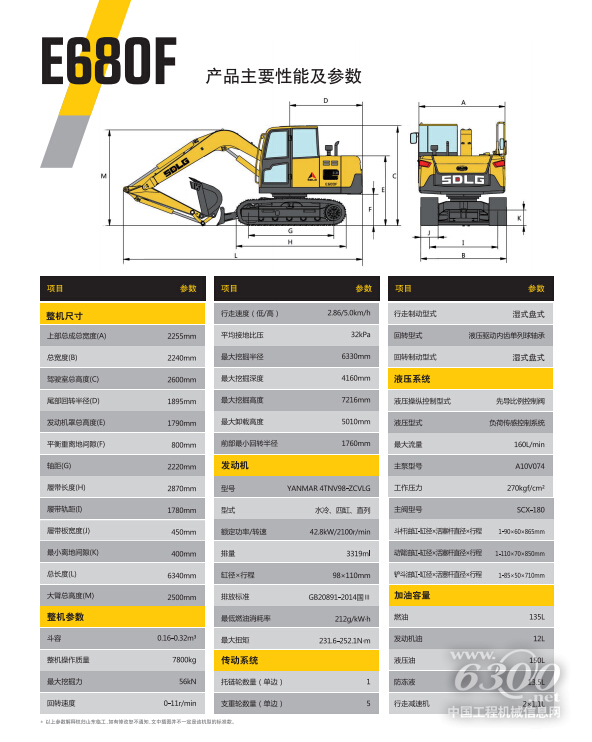 山东临工E680F挖掘机具有经济、舒适、可靠、便利等核心优点,主要表现在动作灵活、速度快,省油、效率高;在挖掘和装车工况方面,力量更大;做工细腻厚重,喷漆质量好,二手机价值高;结构件板材厚,机器人焊接,焊缝探伤仪检测;承载力大,质量好,更耐用;配置山推成熟的四轮一带,导向轮位置的车架专门加固,履带耐磨,寿命长;发动机与液压系统可靠;多个可开启的机罩,维护空间大,滤清器、润滑、电气集中布置,维护更便利。此外,异型管框架驾驶室,驾乘环境更安全更舒适。