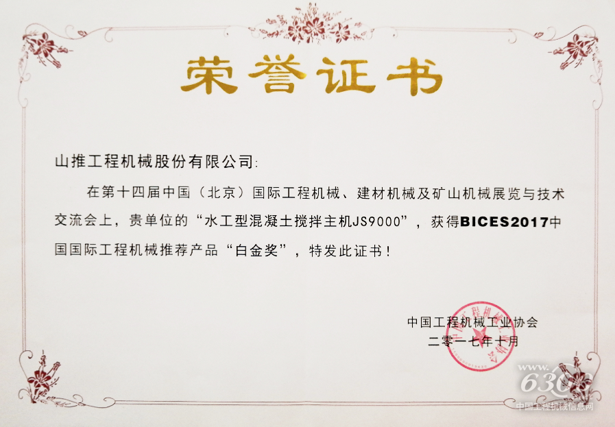 山推建友JS9000混凝土搅拌主机荣获“推荐产品白金奖”。