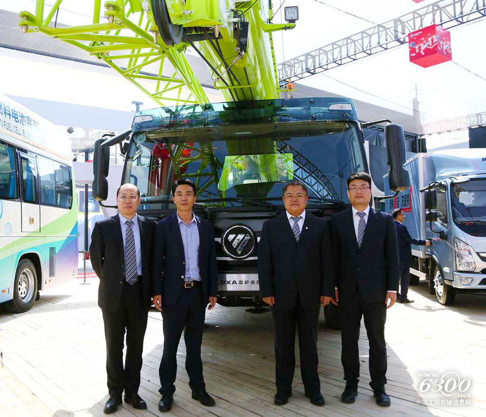 雷萨重机总裁杨国涛先生、经营团队领导和北京中浦总经理缪希超先生在新产品前合影留念
