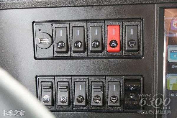 驾驶员右侧主要分为两个区域,其中开关区域上面一行提供了USB接口,方便用户给手机充电,旁边则是照明系统、应急开关;第二行分别是轮间、轴间差速锁的开关、车载WIFI,主副油箱切换以及灯光高度调节等。