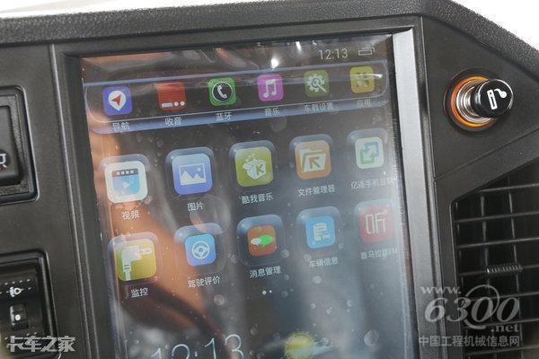 旁边的12寸中控显示器为三一重卡的驾驶室增色不少,基于安卓系统开发的中控显示器可以实现导航、电话连接、音影娱乐、手机互联等。通过连接摄像头可以实现对车辆的实时监控,另外搭载的驾驶员评价和车辆信息以及车辆管理系统,不仅可以让驾驶员随时调整自己的驾驶习惯,还能够为车队管理人员提供车辆实时信息,方便他们的管控。