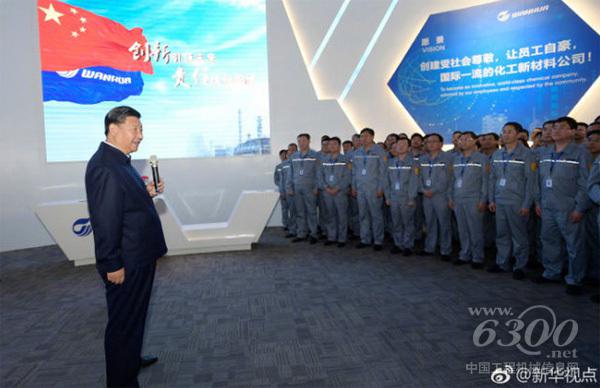13日上午,正在山东考察的习近平来到万华烟台工业园。得知企业走出一条引进、消化、吸收、再创新直至自主创造的道路,技术创新能力从无到有、从弱到强,成为行业领军者,习近平十分高兴。他说,回顾你们这个历程,一路走得很好,虽然是一个艰辛创业之路,但是很成功。之所以取得成功,我的一个体会就是走了自主创新之路。没有不可能的事情,就要有这么一股劲儿,正像屈原讲的“路漫漫其修远兮,吾将上下而求索”。谁说国企搞不好?要搞好就一定要改革,抱残守缺不行,改革能成功,就能变成现代企业。希望大家再接再厉,一鼓作气,一气呵成,一以贯之,朝着你们既定的目标奋勇直前。