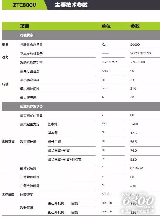 ● 行业创新式板式头部,六节U型58.5米主臂,最大起重能力80吨,最大起升高度83.5m,综合性能行业领先。