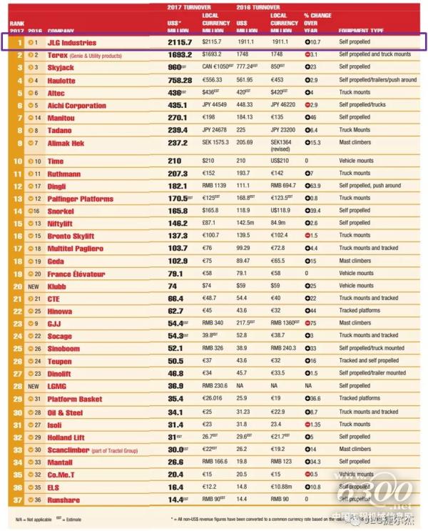 作为全球领先的高空作业平台及伸缩臂叉装车制造商,捷尔杰以遥遥领先之势稳坐榜首!
