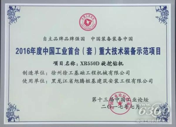 徐工XR550D旋挖钻机上市以来演绎了一段精彩传奇,先后在武汉青山大桥、广州南沙港铁路西江特大桥、赤壁长江大桥等重大工程项目中施工,无论是单打独斗还是联合施工,均以卓越的性能赢得了用户的认可,并在2017年7月获评“2016年度中国工业首台(套)重大技术装备示范项目”。