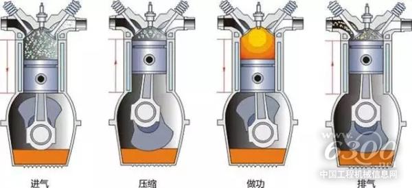 柴油发动机的优点是功率大、经济性能好,每个工作循环也经历进气、压缩、做功、排气四个行程。
