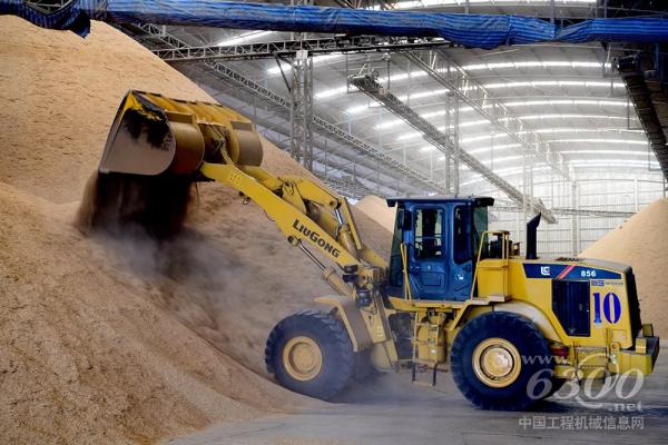 顺着米香和机器加工的响声,我们转进了一个厂房,只见高高的谷堆一个接一个,右手边,筛选谷子的设备正在不停地筛分运转着,而另一边,一台柳工CLG856设备正在不停地将谷子转运至筛分设备,另一台柳工CLG856H则在将散落的谷子堆高,好一派繁忙的景象,同时,我们也能明显感觉到空气中弥漫着的谷子和米糠的粉尘。