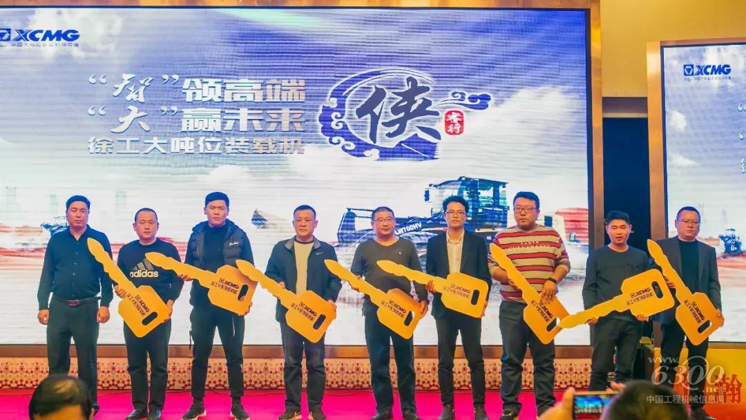 在徐工大吨位装载机侠客行山东站闭幕式上交付签约客户金钥匙