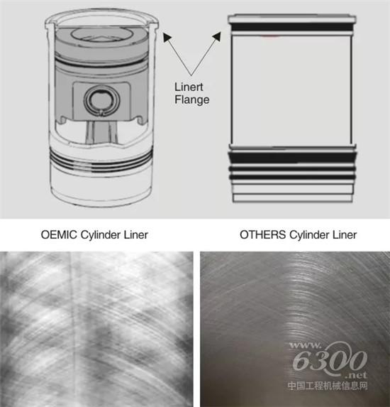 钢质材料成型,采用复合处理加入Ni+P。镗璧硬度与随缸套长度变化的硬化深度表明感应处理控制得当。这种硬度变化在耐摩擦与抗胶合方面都是最优的。等离子外表面渗透工艺能有效防止穴蚀现象,延长使用寿命。缸壁珩磨135°-140°交叉网纹分布均匀、整齐。有效轧制的缸套凸缘圆角半径应力分布均匀,比其它竞争品牌凸缘疲劳强度高。
