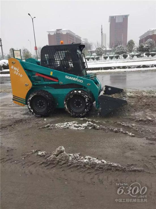除雪小能手——滑移装载机正在卖力的干活啊,它说它不冷,因为它有一颗火热的心。