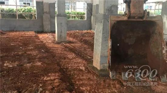 找平时要学会利用前、左、右的参照标准,直向前伸,有五十公分是贴着找过的平面收,也是用前面找过的平面,作为后面的参照样版,利用这五十公分抬大臂、收小臂的贯性来收平后面的土。左右两边横向,也是以第一斗作为样版,找第二斗时露出两个斗齿压着第一斗找平了的平面,看着这两个斗齿高低,慢慢收平,以后每一斗有两个齿印是在重叠。