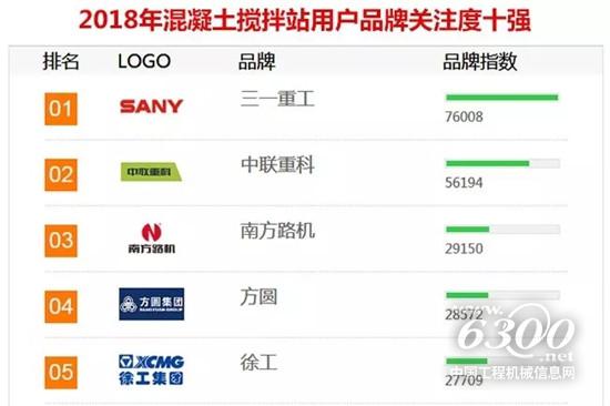 分榜单中,三一的挖掘机械、混凝土机械、搅拌运输车、混凝土搅拌站的品牌关注度均行业排名第一。其中,挖掘机作为最活跃、行业关联度最大的市场,其品牌关注度排行榜一直被视为整个行业的风向标。据介绍,从2009年起,三一挖掘机械品牌关注度也已连续10年蝉联榜首。