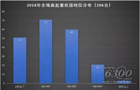 2018年全地面起重机销售主要在350T以下的车型,这种车型一般局限于当地租赁使用,原有车型大部分为60米主臂以下,这几年经过厂家升级改造,新款车型主臂长度均在70米以上,两者在性能差距上越来越明显。