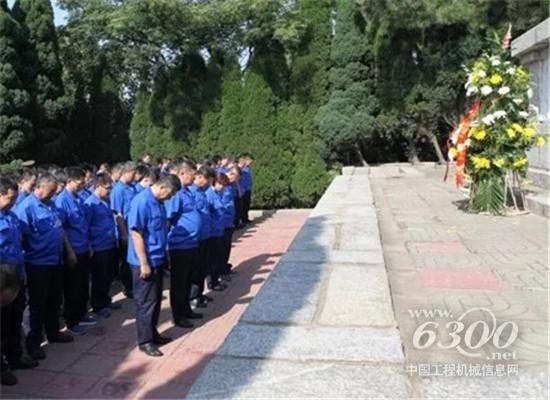 庄严肃穆的滨海烈士陵园,整齐伫立在纪念碑前默哀的一排排着蓝色工装的队伍,这是参加9.30烈士纪念日,接受红色教育的山重建机的全体党员。
