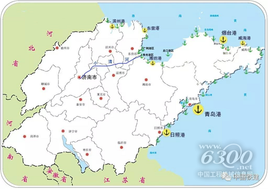 山东小清河复航工程起自济南市荷花路跨小清河桥下 200米,终点为潍坊港西港区羊口作业区,全长 169.2公里,途径济南、滨州、淄博、东营、潍坊等五市,是我国不可多得的具备海河联运条件的水运资源,也是山东省现阶段唯一一条具备海河联运开发利用条件的航道。中国铁建将着力把小清河打造成为集防洪、生态、航运、景观旅游、文化于一体的黄金水道。