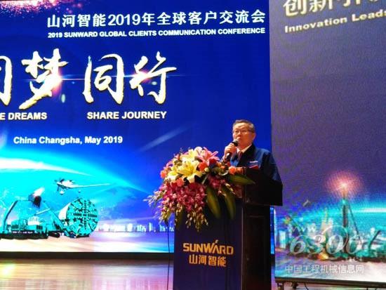 中国工程机械工业协会会长祁俊在交流会上致辞,分析当前工程机械行业形势,近几年来市场持续全面向好,各企业稳健发展。他提到,“我们欣喜地看到,在此良好态势下,以山河智能等为代表的一批中国工程机械企业,仍在夯实基础,勤练内功,敢于创新,研发生产出了许多高水平的产品。此时此刻,来自全球各地的朋友们在山河齐聚一堂,更是充分显示出了山河智能的人缘和品牌影响力,也让我看到了中国工程机械行业持续快速发展的美好愿景。希望山河智能今后再接再厉,发扬创新精神,研发生产出更多卓越的产品,为中国工程机械行业的健康快速发展再献巨力!”