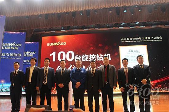 领导致辞完毕后,山河智能举办了盛大的客户签约仪式,此次签约客户除了来自中国各地的代理商、租赁商、机主外,更有来自新加坡、越南、印度、蒙古、厄瓜多尔的外国公司老板们。由于签约人数众多,此次山河智能创新性地使用电子签约仪式。本次签约仪式,实现销售收入8.2亿元。更是有一家广东企业一次性签下100台旋挖钻机合同,这充分说明了山河智能设备的可靠性和在用户心中的美誉度。