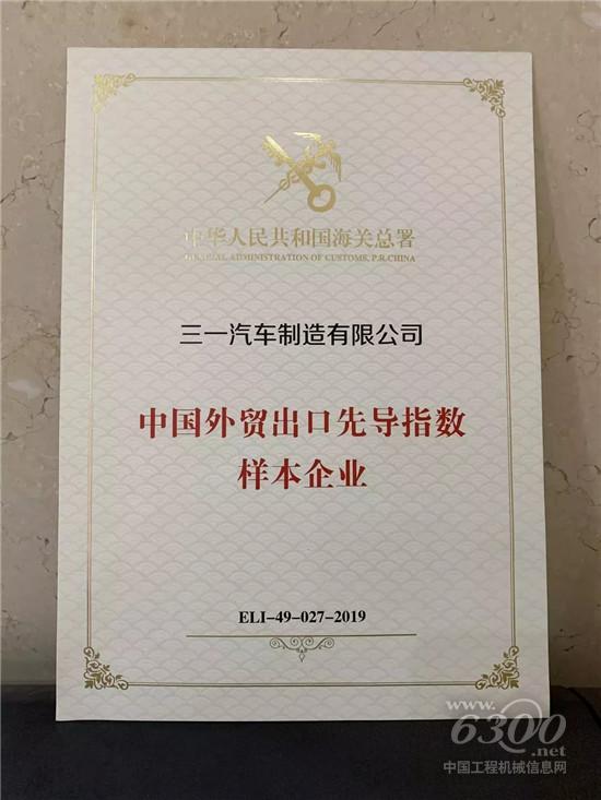 5月22日,三一在海关总署“中国外贸出口先导指数样本企业宣讲会”会上获评“中国外贸出口先导指数样本企业”,将参与中国外贸出口先导指数的信息支持工作。“中国外贸出口先导指数”是海关总署将加工贸易进口、企业订单、成本等进行统计合成的月度综合指标,一般被用来预警我国未来二三个月的出口走势,对观测贸易平稳发展具有重要意义。该指数主要通过样本企业填报问卷调查的方式产生。