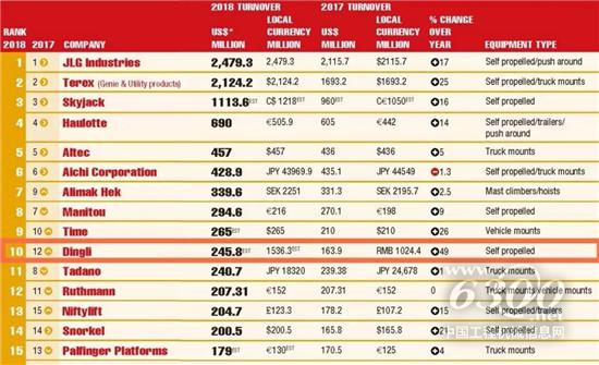 近期,英国KHL集团旗下高空作业平台杂志《Access International》发布“2018年全球高空作业平台制造企业20强”榜单(AccessM20)。国内企业鼎力排名第10,上升2位;星邦重工排名19,上升7位。榜单前5名高空作业企业分别为:捷尔杰JIG(美国),特雷克斯Terex(美国),斯凯杰克SkyJack(加拿大),欧历胜Haulotte(法国),Aichi爱知(日本)。