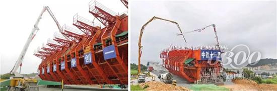 本次浇筑的移动模架现浇梁梁长40.6米,宽12.6米,混凝土浇筑方量为438.2方,梁体自重达1000吨,比传统的32米箱梁重100吨,是名副其实的“巨无霸”。