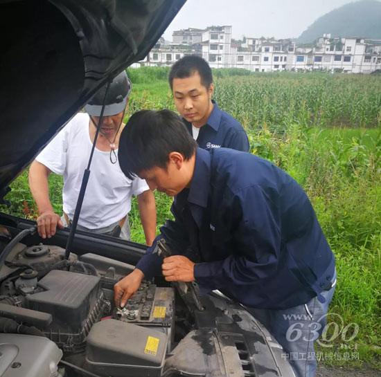 前往救援的途中,三一救援小分队路遇供受灾人民居住的车辆,在得知车辆受损后,小分队成员立即协同对车辆进行了维修,使得车辆得以正常运行。
