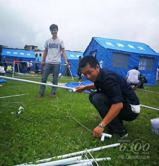 三一泵送救灾分队现场帮助灾民搭建帐篷、运送物资