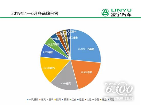 6月份的东风重卡以2.1万辆的月销售成绩牢牢锁定销售亚军,同比增长2%,上半累计销售12.63万辆,同比增长5%,所占市场份额为19.3%,稳居行业第二位。