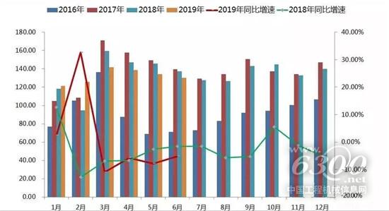 2019年6月份中国工程机械市场指数同比、环比继续为负,降幅分别缩小2.68和0.35个百分点。表明中国工程机械市场在2019年市场周期性淡季的徘徊中,有继续向下调整的可能。CMI指数中,针对制造商群体进行调研反馈的库存指数比上期高3.3个百分点,生产指数降低1.5个百分点;针对代理商群体调研反馈的新订单指数降低5.2个百分点,针对市场一线调研的用户价格指数与上期基本持平,部分子行业、区域的市场继续出现降温态势。