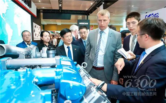 中国驻白俄罗斯大使(左三)、白俄罗斯经济部部长(右三)参观潍柴展位