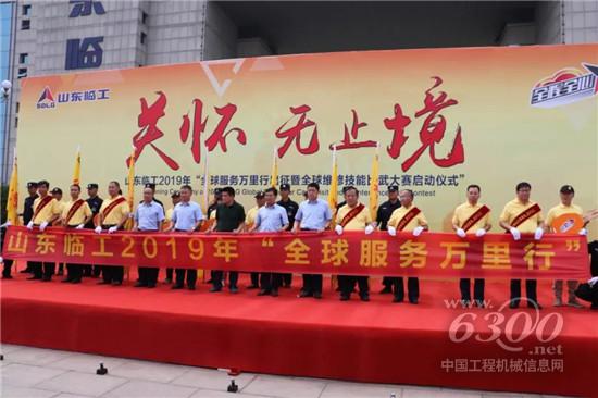 2019年7月11日,以“关怀 无止境”为主题的山东临工2019年全球服务万里行出征暨全球维修技能比武大赛启动仪式在山东临工隆重举行。山东临工总裁于孟生、总经理文德刚、副总经理马兴庆、副总经理兼营销公司总经理史生勇、总工程师迟峰等领导,以及行业媒体、服务走访团队、经销商代表、职工方队共聚一堂,一同见证山东临工“全程全心”服务号航母的启程远航。