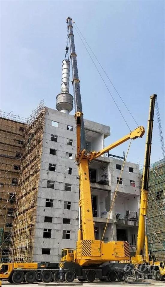 在江西“十三五”规划重大工程项目新余市分宜县发电厂施工现场,XCA550吊起88吨的水循环,发电机组等设备,“力拔山兮气盖世”。