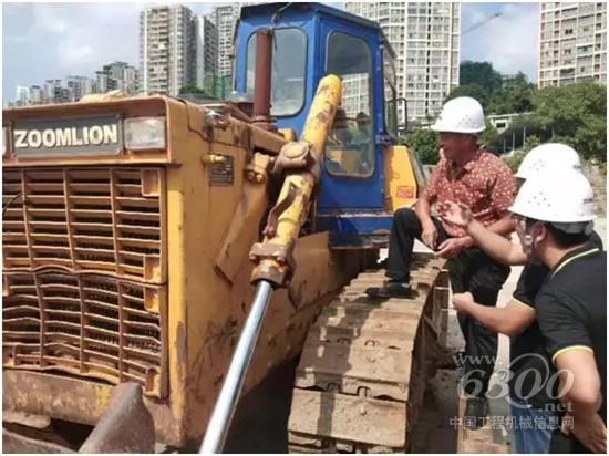 老杨向中联重科服务万里行人员介绍推土机运行情况