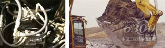 其工作装置采用强化设计,装配矿山专用斗杆,机重大、液压系统设计压力高,工作装置、液压系统与整机完美匹配,擅长铲装重质石料、动作不卡滞。