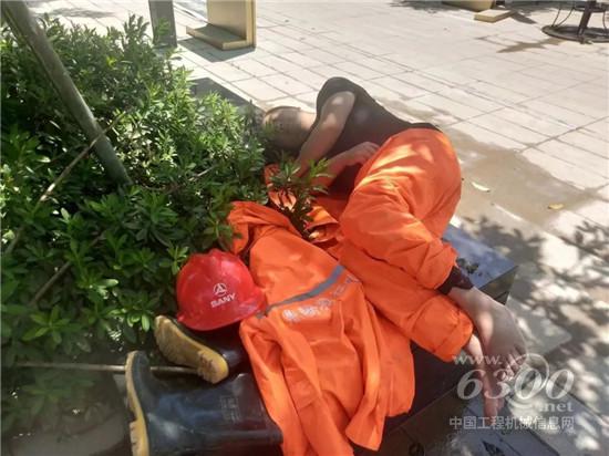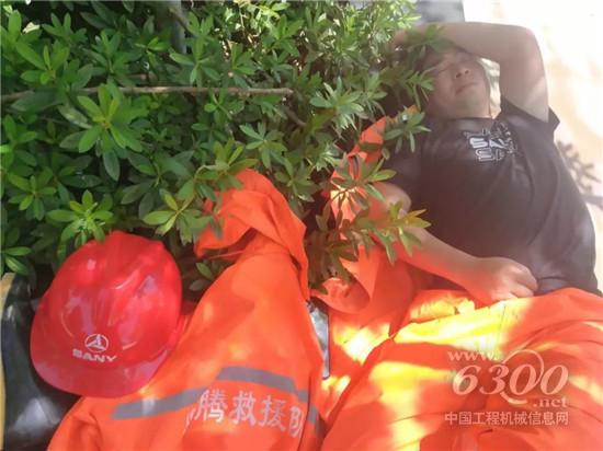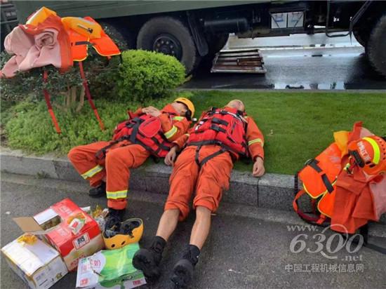 长时间的救援后,救援队员已经累趴,躺在地上就睡着了。