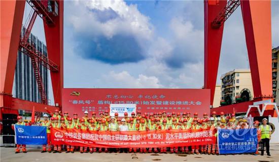 此次始发的“春风号”泥水平衡盾构机,是中铁装备集团与中铁隧道局联合研制的重大装备成果,于2018年9月在郑州成功下线。设备开挖直径为15.80米,重4800吨,长135米,装机总功率超过1.15万千瓦,掘进总推力高达2.46万吨。该设备是迄今为止我国自主设计制造的最大直径泥水平衡盾构,其设计制造技术达到了世界先进水平。