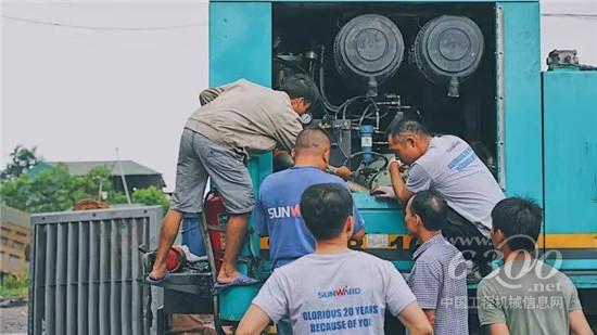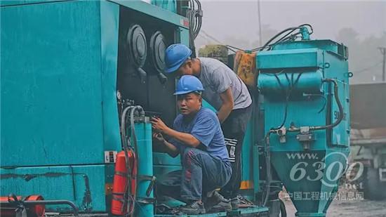 巡检当日暴雨不断,对设备维修造成了很大的困难,但两位山河智能的服务工程师依然在风雨中坚持排解了设备的故障,待到设备一切运转正常后,代理商和客户被山河智能服务工程师的敬业精神所折服,竖起了大拇指。