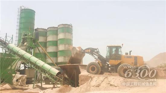 徐工“百万里”服务团队与客户合影,同时装载机新成员ZL50GV正在料场施工