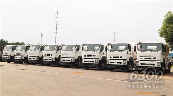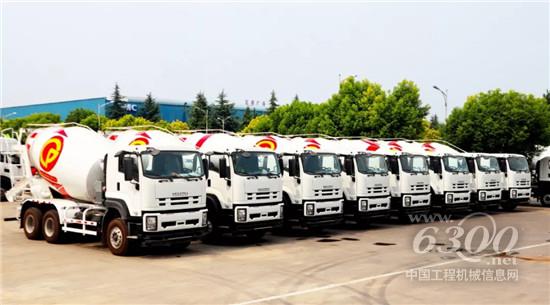 走近一看,这是一批五十铃底盘搅拌车。