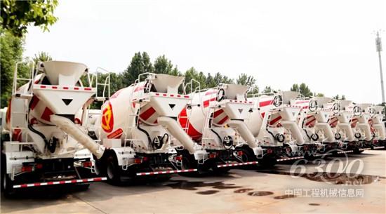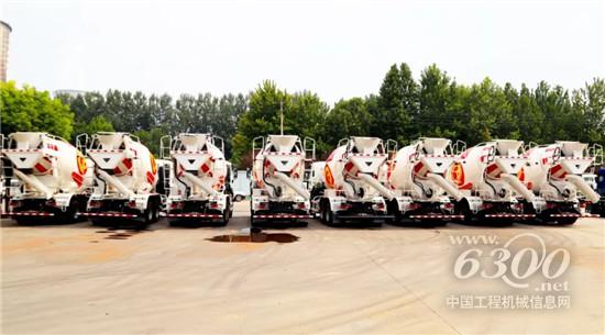 初秋,天高云淡,依然火辣的骄阳照在一批靓丽的搅拌车上,它们排列整齐,蓄势待发,着实让人赏心悦目。从外观和图案来看,这是一批出口的产品。