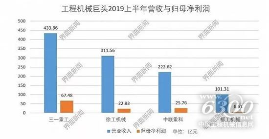 工程机械巨头2019上半年营收与归母净利润。数据来源:各公司半年报