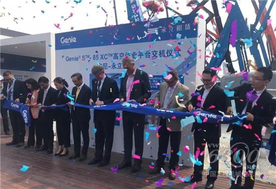 2019年9月4日,北京BICES展,全球高空作业平台领军品牌——吉尼,携手永立建机(中国)有限公司(以下简称:永立建机)在特雷克斯展台举行了Genie® S™-85 XC™自行式直臂型高空作业平台交付仪式。永立建机自2019年6月与吉尼开始合作之路,在国内七个区域建立了六大基地,并于8月23日同时对外营业。此次BICES展中采购的一批超大载重Genie S-85 XC 将会悉数配置到永立建机的各个设备租赁基地。