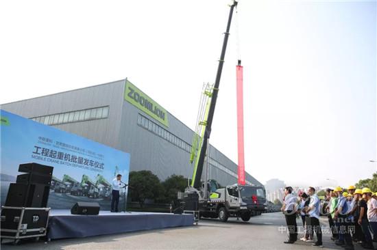 9月12日上午,在中联重科泉塘工业园举行的中联重科·甘肃建投印尼装备公司工程起重机批量发车仪式上,首批交付的中联重科工程起重机浩浩荡荡依次从园区驶出,“中联绿”成为了马路上一道壮观的风景线。