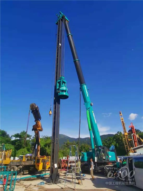 这种设备主要应用于基础施工领域,在钻机无法到达的区域作业,例如高坡、深沟、狭窄地带的施工,最能发挥它的优势。这种立柱被加装在起重机吊臂头部,可以通过伸缩吊臂使立柱到达需要的作业位置,这就大大的增加了钻机的作业半径,很好的解决了因施工场地受限导致主机无法靠近的问题。