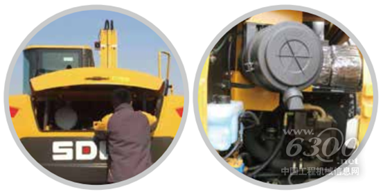 滤清器集中:空滤、燃油滤、机滤、液压油滤清器等保养件集中布置在发动机罩内,站在地面即可维护保养