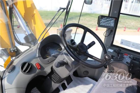 豪华舒适的驾驶室也让人印象深刻,采用的是弧面玻璃,保证了驾驶员有一个好的视野,冷暖空调、自动润滑系统、LED灯、蓝牙收音机、指动球形先导双手柄、起动连锁、APS、AUTO-CLUTCH、FNR集成换挡等功能齐全。