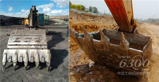 铲斗对比对比沃尔沃EC360BLC(左)、山东临工E6360F挖掘机(右)