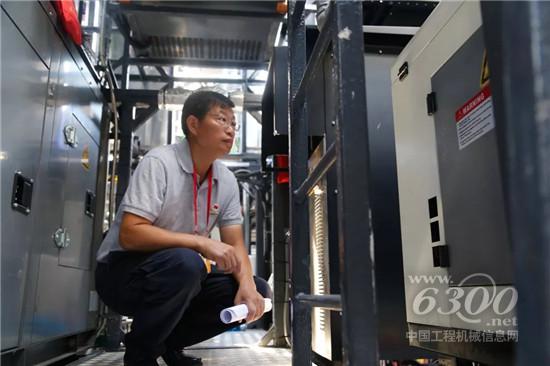 ▲中联重科党委副书记王旭虹在湖南彩车上进行最后检查,确保万无一失