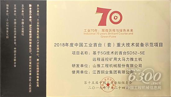 山推以基于5G技术的首台SD52-5E远程遥控矿用大马力推土机揽入“中国工业首台(套)重大技术装备示范项目”称号。SD52-5E远程遥控矿用大马力推土机以智能控制技术、5G网络通讯技术、远程遥控为依托,实现了可视化、数字化与智能化高效的操作,设备可进行大数据分析、检测机器故障和远程监控等全流程操作,大幅节省人员成本、降低作业事故率、提高工作效率及产出,使矿山采矿工作更加灵活。
