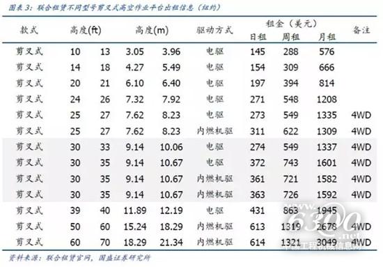 价格带明显。1、横向比较,出租方式主要分为日租/周租/月租三种方式,以单日价格计算,周租成本约为日租的28%,月租成本约为14%左右。即,从使用成本角度,其也是鼓励客户进行长租。2、纵向比较,不同作业高度的高空作业平台出租价格梯队有所差异。非主力机型,作业高度每提升1米,租赁价格有近15%左右提升;而主流10米升高的机型,基本持平作业高度8米左右的高空作业平台。