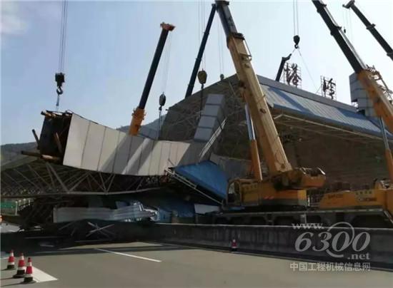 11月6日凌晨4点,天刚蒙蒙亮。G56杭瑞高速景婺黄段,一阵阵“隆隆隆……”的机器轰鸣声悄然响起。现场,包含QY25K5A、QY70KC、QY40KC、XCT80L6、XCT110、XCA300等型号在内的8台徐工起重机依次排布,正式开启江西境内“最难拆”的赣皖省界塔岭收费站拆除工作。